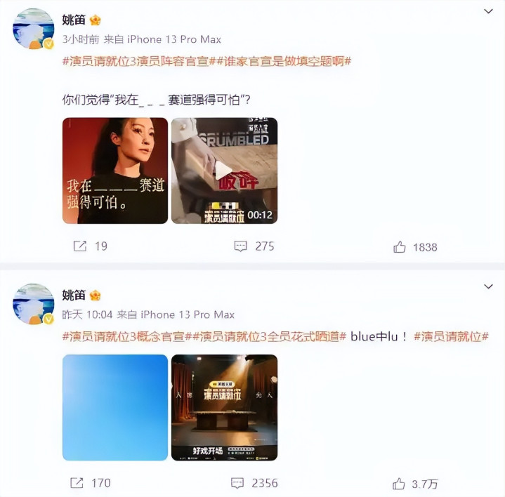 在节目即将开播之时,姚笛在个人社交账号大力宣传,还发出自己演绎破碎情绪的片段。
