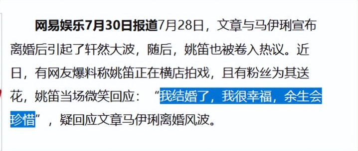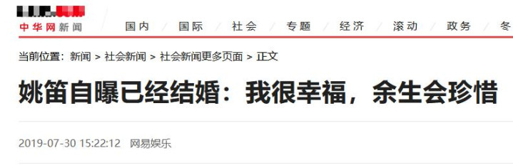 姚笛自曝已经结婚:我很幸福,余生会珍惜——中华网
