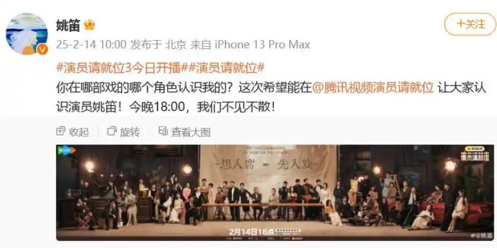 2025年2月11日,《演员请就位3》官宣姚笛加盟。